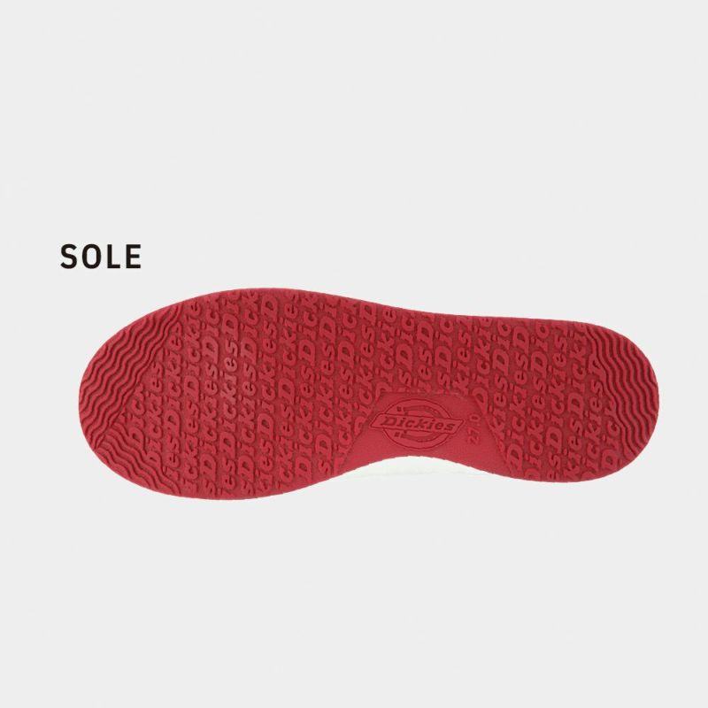 サイドのメッシュ部分にDickiesロゴをプリントし、ソールもブランドが総柄で入るデザイン。