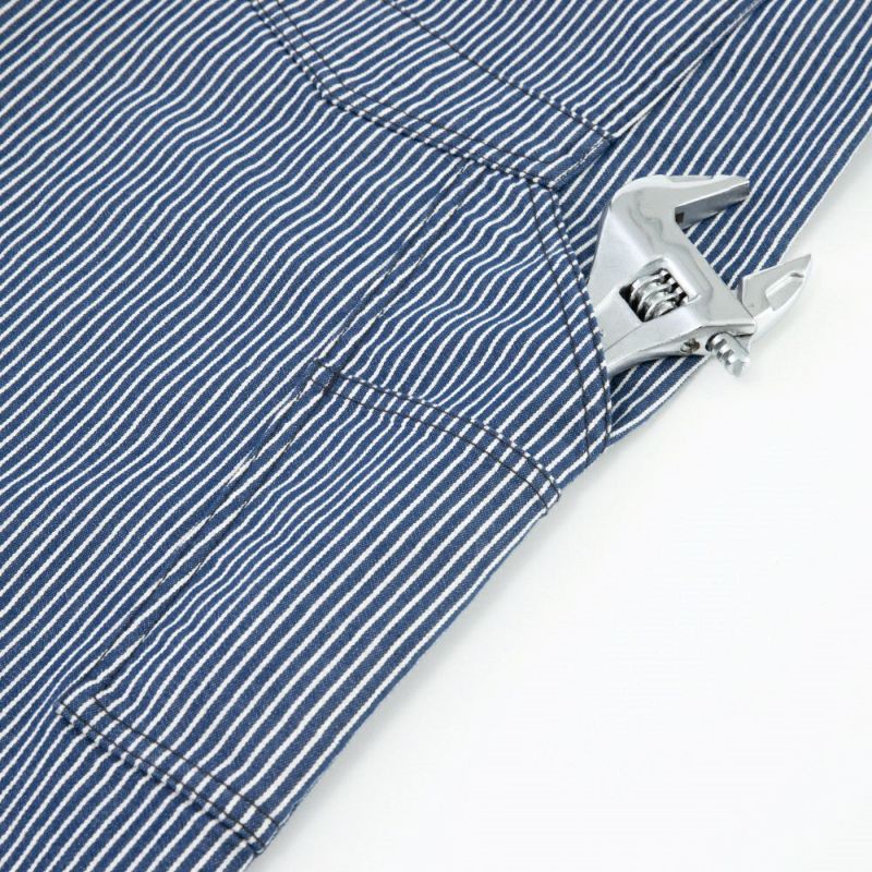 短くなっても左右のハンマーループやツールポケットは健在で、収納力はそのままに夏仕様のオーバーオールとなっています。
