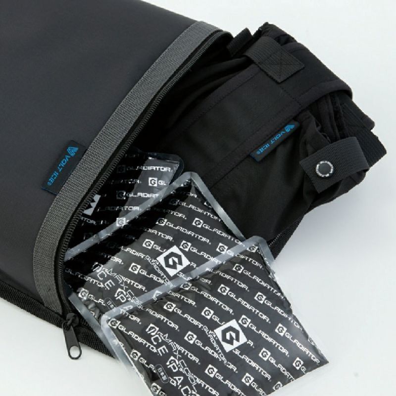 アイスパック(GI-404/別売り)を最大12個収納可能でアイスベスト(GI-409/別売り)を1日使用できる。
