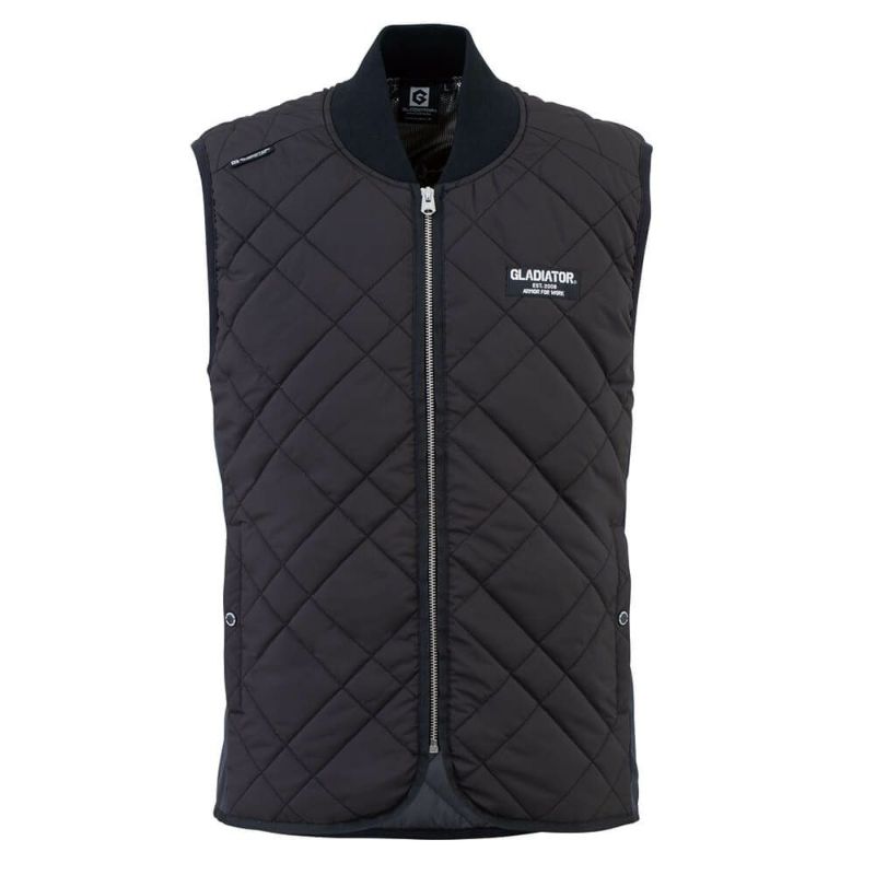 表面がキルティングの引き締まったデザインで、電熱ベストとは分からない装い