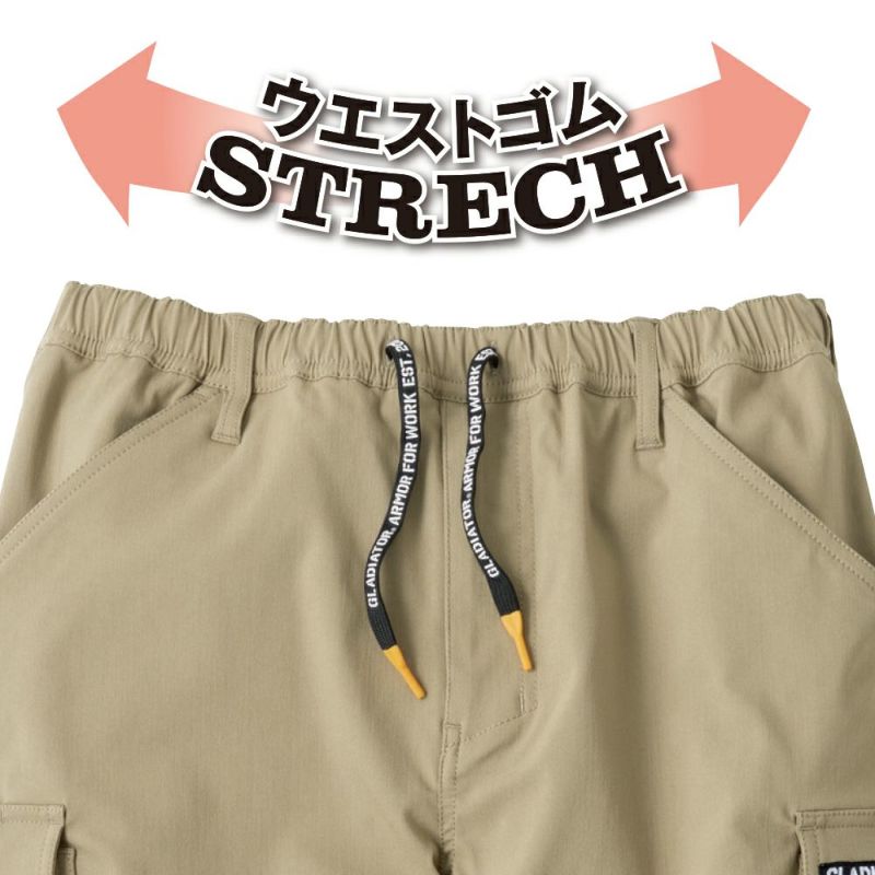 横伸び55%の超ストレッチにウエストゴムでこの上ないリラックス感のカーゴパンツ。