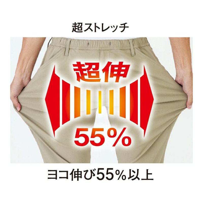 横伸び55%の驚異的なストレッチにウエスト総ゴム+ドローコードは一度履くと楽さの極みを実感できる。