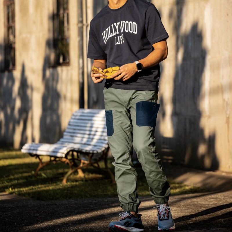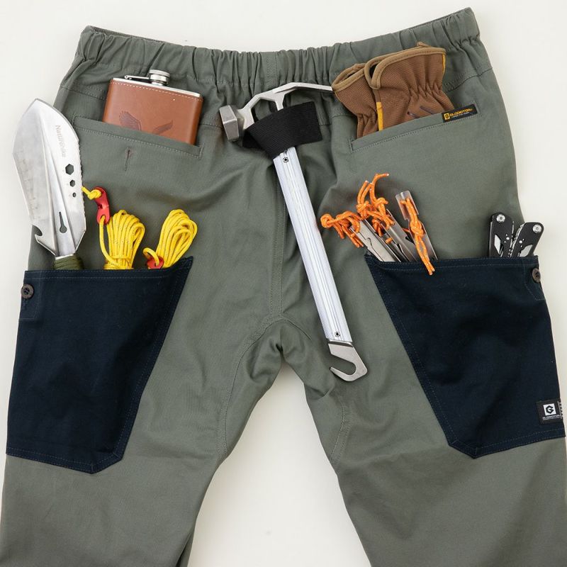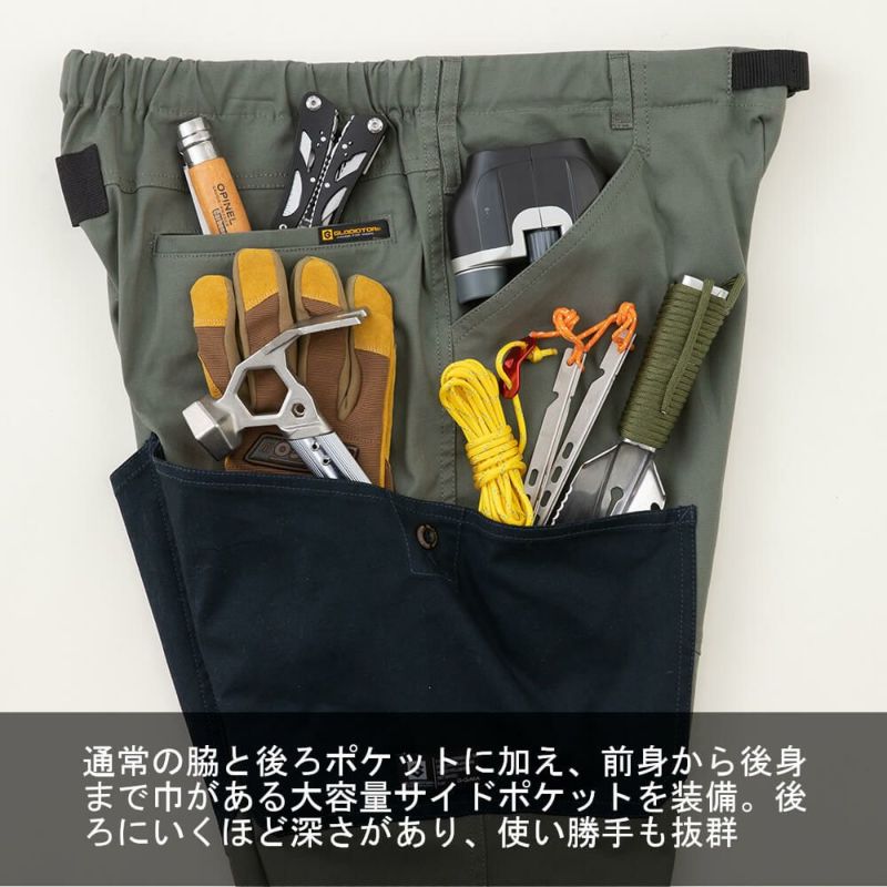 両サイドに幅広深めの大型ポケットを装備 【GLADIATOR】ストレッチアウトドアジョガーパンツ