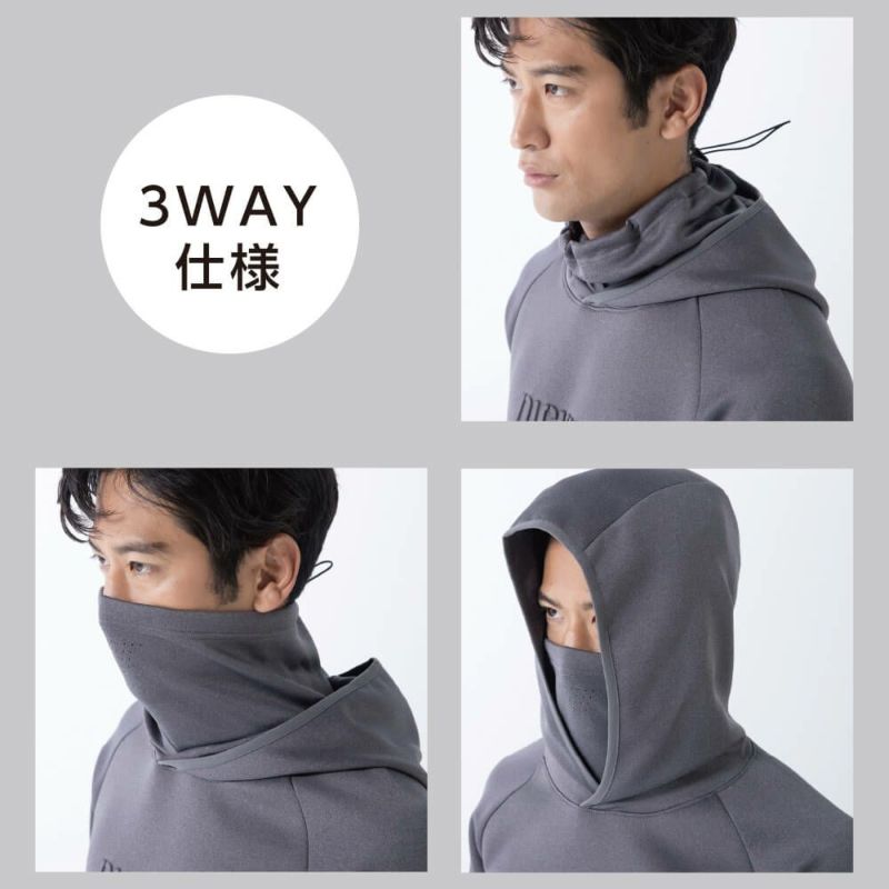 ・ネックウォーマーORフェイスマスクとパーカーを併用可能