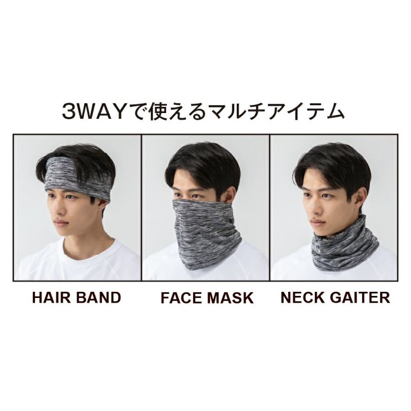 屋外作業やアウトドアなど太陽光のある場所で本領発揮し、ヘアバンド・フェイスマスク・ネックウォーマーの3WAYで使い分けも可能。