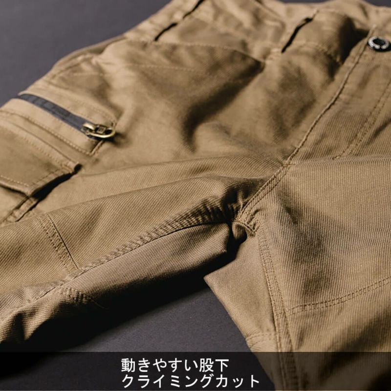 股下が登山用パンツにも採用されるクライミングカットに加え、横伸び12%のストレッチ素材で動きやすく穿きやすい、機能性とルックスの両立を実現。