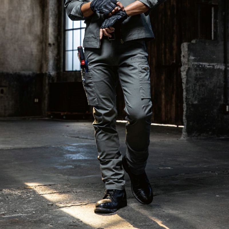 股下のクライミングカットや膝タックで動きやすくワーカーの作業パフォーマンスを引き出すカーゴパンツ。