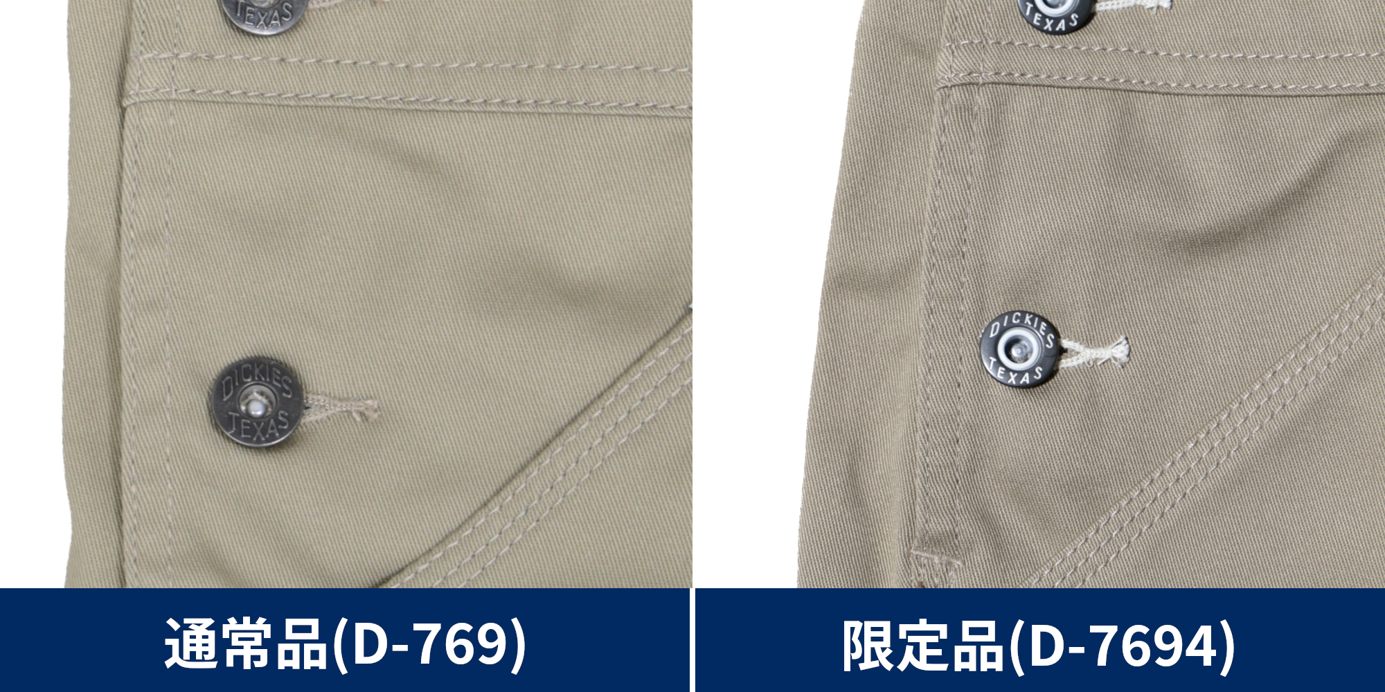 通常品は黒背景にディッキーズのロゴが入っているネームタグが左胸に付いていますが、今回の限定品は生地色と同じ背景色のネームタグに変更。さらに取り付け位置も背中に付いておりディッキーズらしいデザインに。