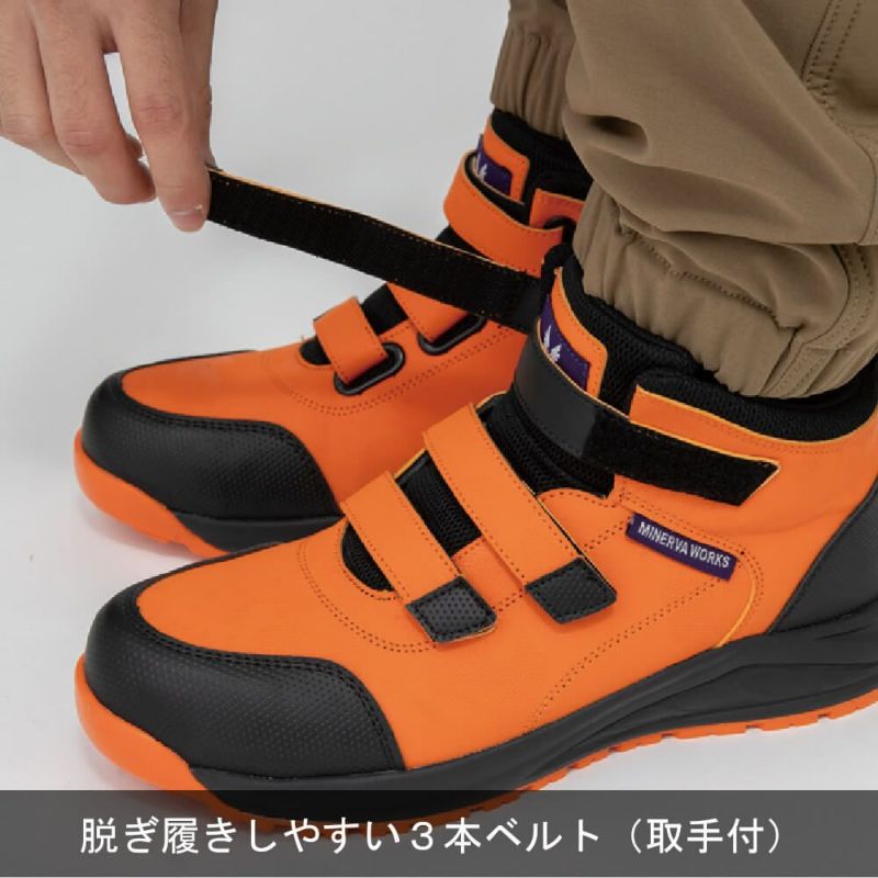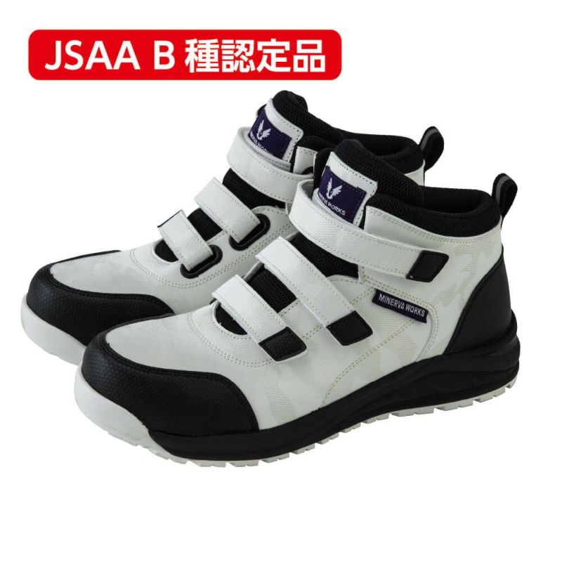 3本ベルトで簡単着脱!JSAA B種認定プロスニーカー 【MINERVA WORKS】ミッドカットマジックプロスニーカー