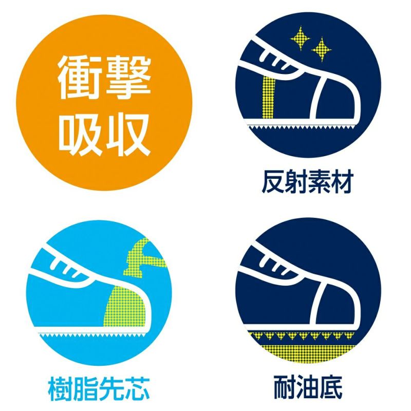 片足の重量はわずか350g(26㎝の場合)で疲れにくく、耐油底やつま先を上げてつまずきにくい仕様など作業・仕事に寄り添う機能。