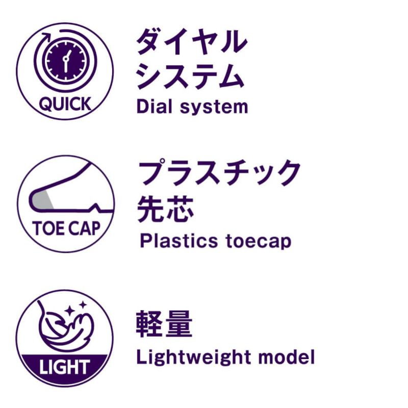 靴の真ん中に多いダイヤルをサイドに配置することでフィット感UP。
