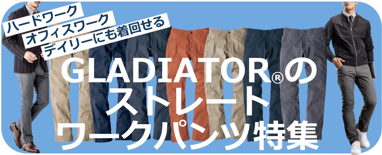 より丈夫で、より動きやすく、よりカッコイイGLADIATOR®のストレートワークパンツは、ハードワークに限らず、オフィスでもデイリーでも着回せる”定番”オールラウンドパンツ。コーコスオンライン&アウトレットストアでは、ストレッチコードピケ、ストレッチチノ、T/Cストレッチツイルの3つの素材で展開中。