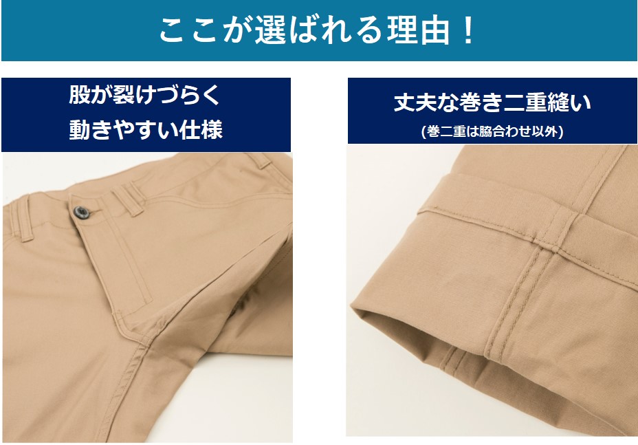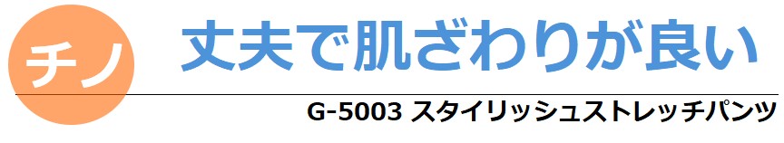 綿の混率が高い為、耐久性があり、肌ざわりも良いのが特徴です。ヨコ伸び25%以上のストレッチ機能を添えて、動きやすさも抜群です。