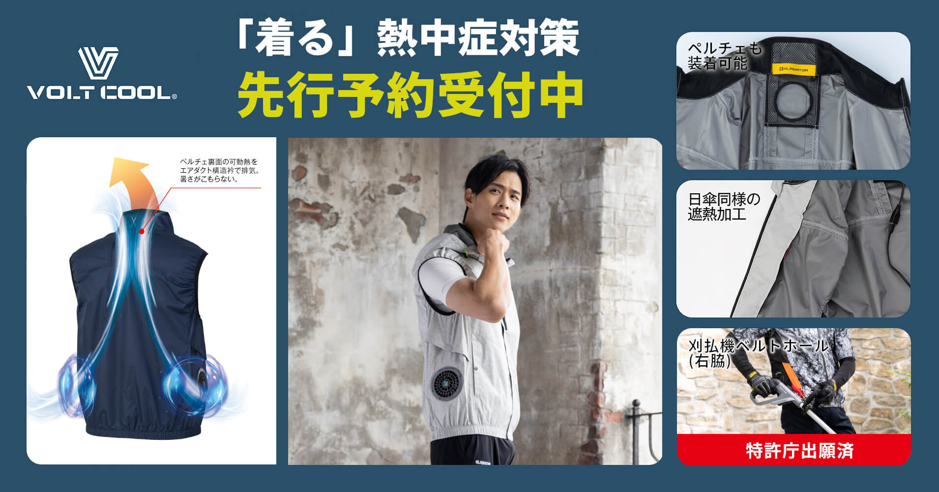 過去製品でも好評のサイドファン・裏アルミ日傘遮熱・ペルチェ装着ホールは引き続き採用し、新たに「右胸バッテリーポケット」「刈払機ベルトホール」を採用。